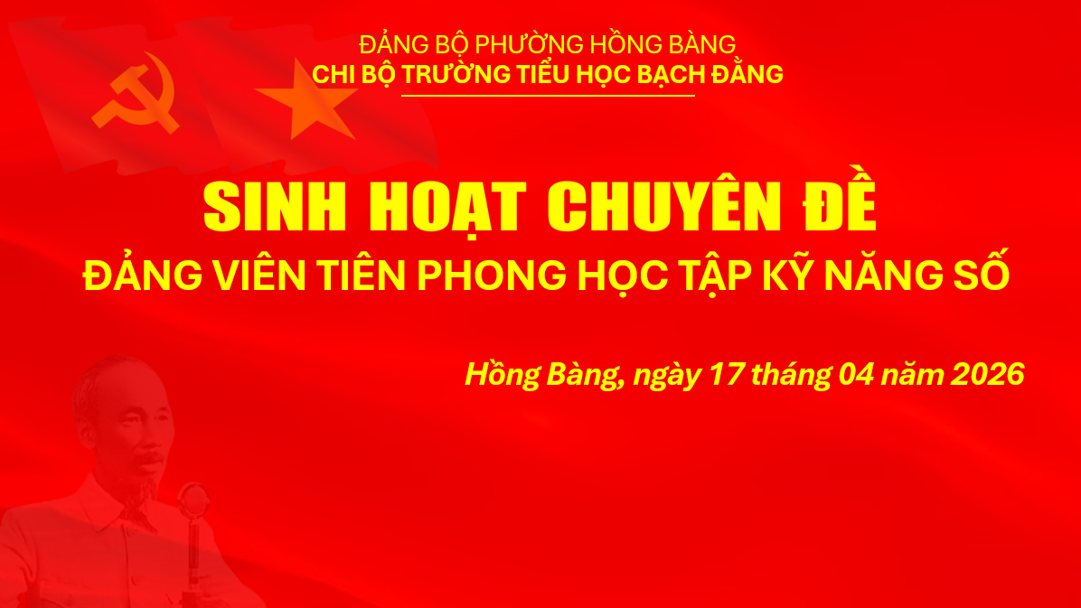 🍀Thực hiện Kế hoạch số 66-KH/ĐU của Đảng ủy phường Hồng Bàng về Tổ chức sinh hoạt chuyên đề “Đảng viên tiên phong học tập kỹ năng số”, ngày 17/4/2026, Chi bộ trường Tiểu học Bạch Đằng tổ chức buổi sinh hoạt chuyên đề “Đảng viên tiên phong học tập kỹ năng số”