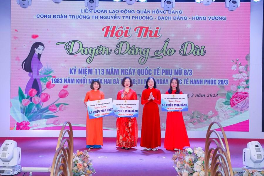 Tại buổi kỷ niệm đã diễn ra cuộc thi "Duyên dáng áo dài" nhằm tôn vinh vẻ đẹp của nữ đoàn viên 3 nhà trường và lan toà giá trị bền vững của một nửa thế giới. Cuộc thi cũng là hoạt động chào mừng Đại hội Công đoàn quận Hồng Bàng nhiệm kỳ 2023-2028.