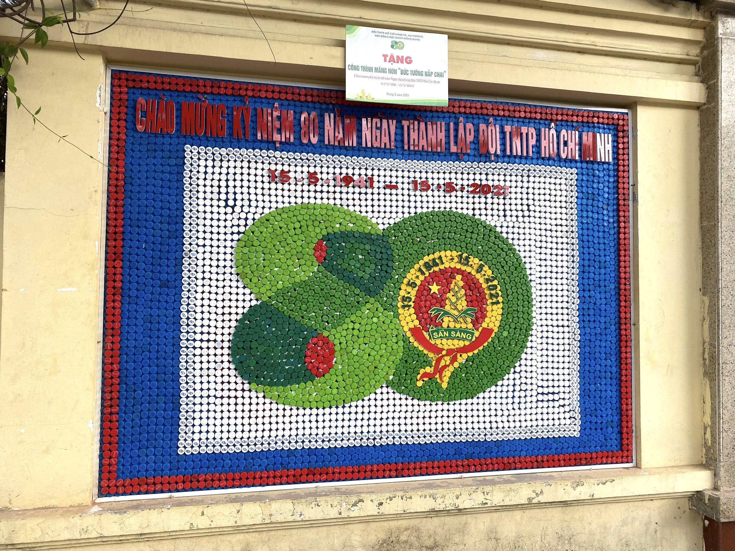 Chiều ngày 15/5/2021, với sự chứng kiến của các đồng chí đại biểu đại diện Mặt trận Tổ quốc Việt Nam quận, Đảng uỷ, Đoàn thanh niên phường Sở Dầu, đại diện Ban giám hiệu, Ban phụ trách trường Tiểu học Bạch Đằng, BCH Quận Đoàn Hồng Bàng tổ chức khánh thành công trình măng non "Bức tranh từ nắp chai" - chào mừng 80 năm ngày thành lập Đội TNTP Hồ Chí Minh (15/5/1941 - 15/5/2021).