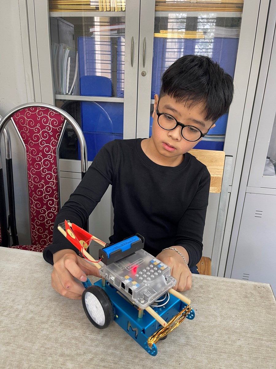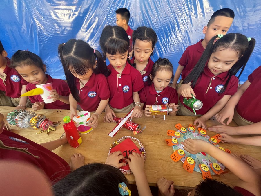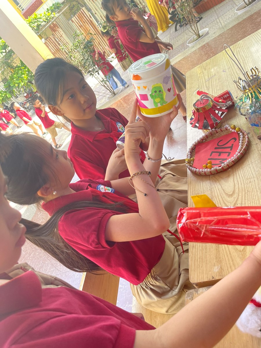Vào giờ ra chơi cùa thứ Năm hàng tuần, các bạn đội viên, nhi đồng có chung sở thích tập trung ở đây. Các bạn đã tự tay chế tạo các sản phẩm từ những vật liệu đơn giản, gần gũi với cuộc sống, vật liệu tái chế giúp bảo vệ môi trường. Qua mô hình hoạt động này sẽ giúp các Đội viên, nhi đồng được tự mình mắt thấy - tai nghe - tay chạm để thực hiện h tìm tòi, khám phá hoặc thiết kế, chế tạo,.... Từ đó, giúp HS phát triển tư duy khoa học, tư duy công nghệ, tư duy thiết kế kĩ thuật, dần hình thành năng lực truyền tải nội dung khoa học thành các sản phẩm công nghệ phục vụ đời sống.