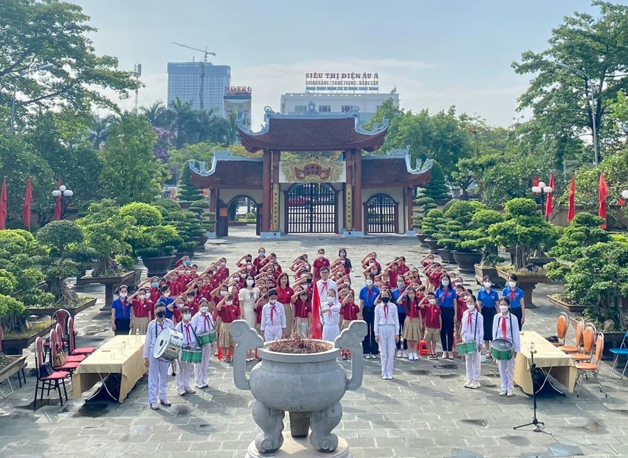 Liên Đội Tiểu học Bạch Đằng đã tổ chức “Lễ kết nạp Đội viên” cho 81 em Nhi đồng tiêu biểu khối lớp 3 tương ứng với 81 năm kỷ niệm tại Đền Liệt sỹ quận Hồng Bàng.