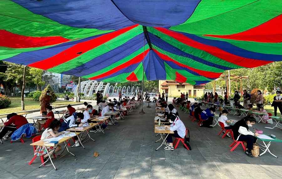 Tại đây các em học sinh xuất sắc của các trường đã thể hiện tài năng hội hoạ của mình, những suy nghĩ, ước mơ theo chủ đề “Vì Hải Phòng: Xanh- Sạch - Đẹp”