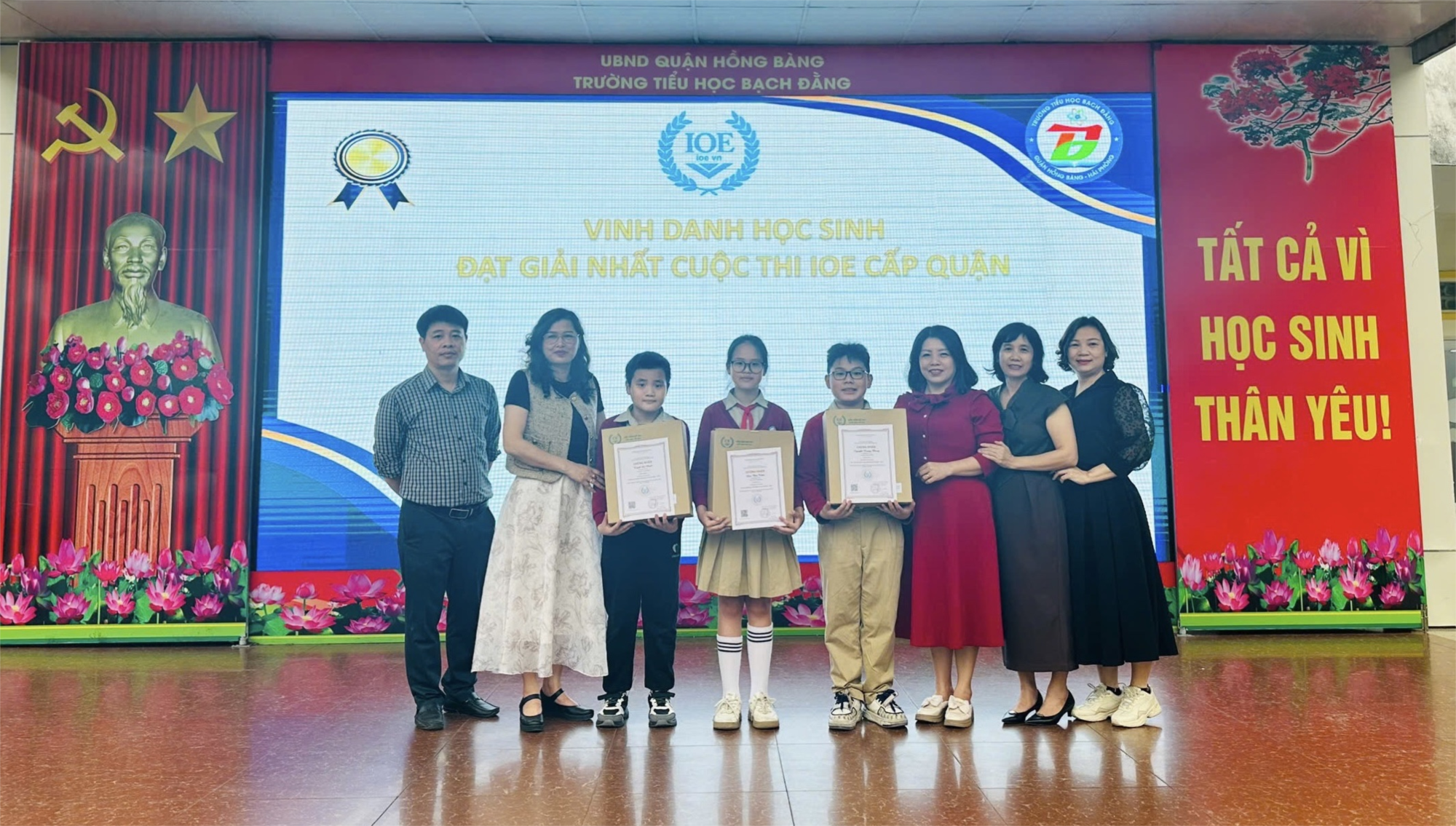 ⭐Ngày 05/3/2025, các em đã vinh dự thay mặt cho 23 em học sinh đạt giải cấp Quận của nhà trường được Vinh danh, nhận Phần thưởng và Giấy chứng nhận của Ban tổ chức cấp Toàn quốc tại sân khấu của nhà trường.