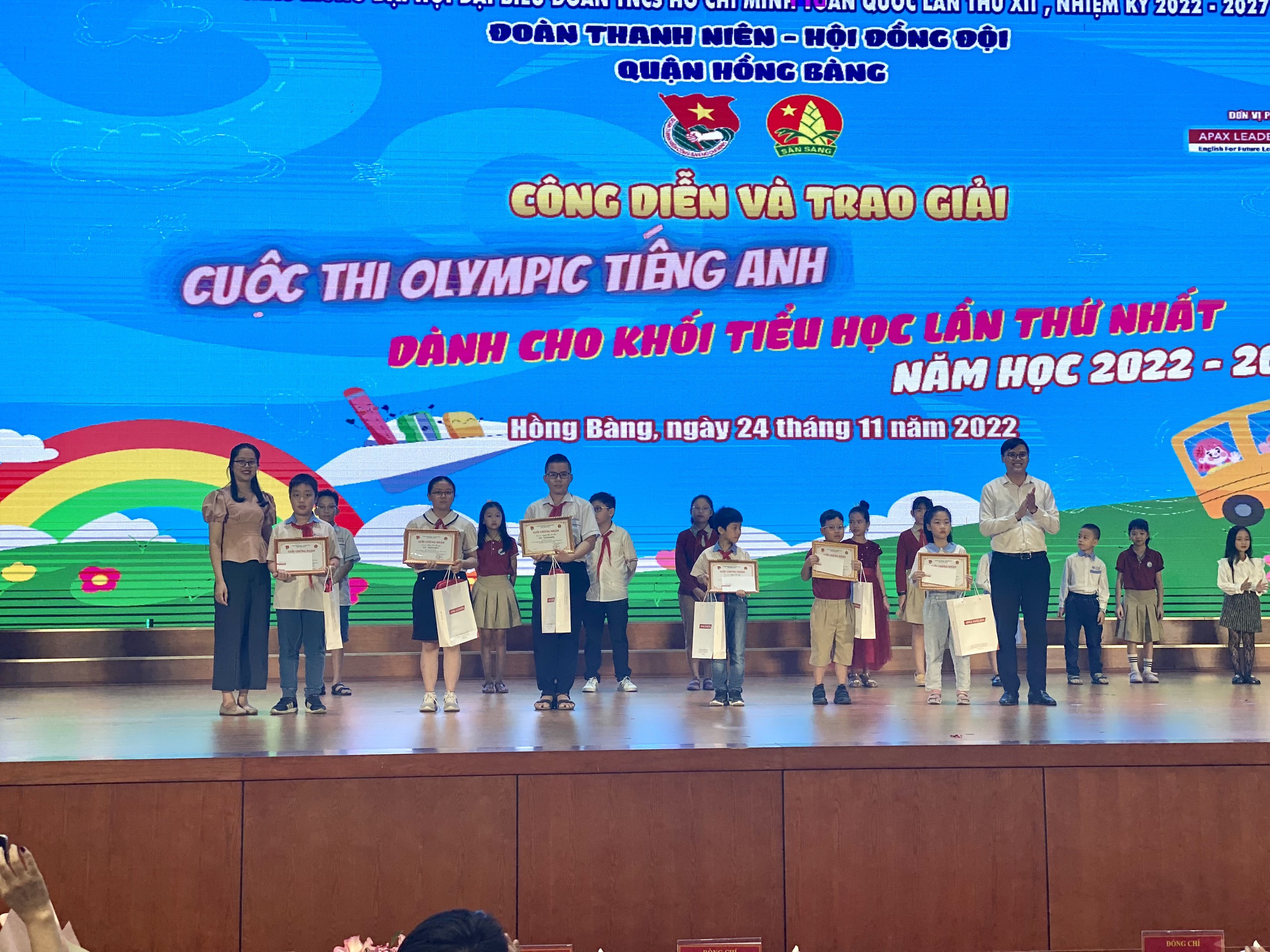 Chiều ngày 24/11/2022, thầy và trò trường Tiểu học bạch Đằng tham dự Chương trình công diễn và trao giải Cuộc thi Olympic Tiếng Anh dành cho khối Tiểu học quận Hồng Bàng lần thứ I năm học 2022-2023 tại Hội trường Trung tâm Chính trị - Hành chính quận Hồng Bàng.