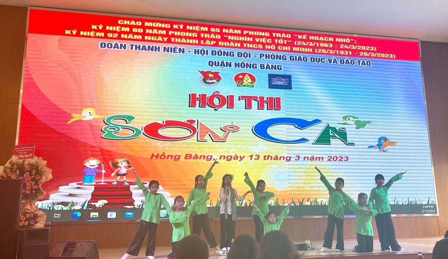 Chiều ngày 13/3/2023 Liên đội trường Tiểu học Bạch Đằng tham gia "Hội thi Sơn ca cấp Quận” năm học 2022-2023.