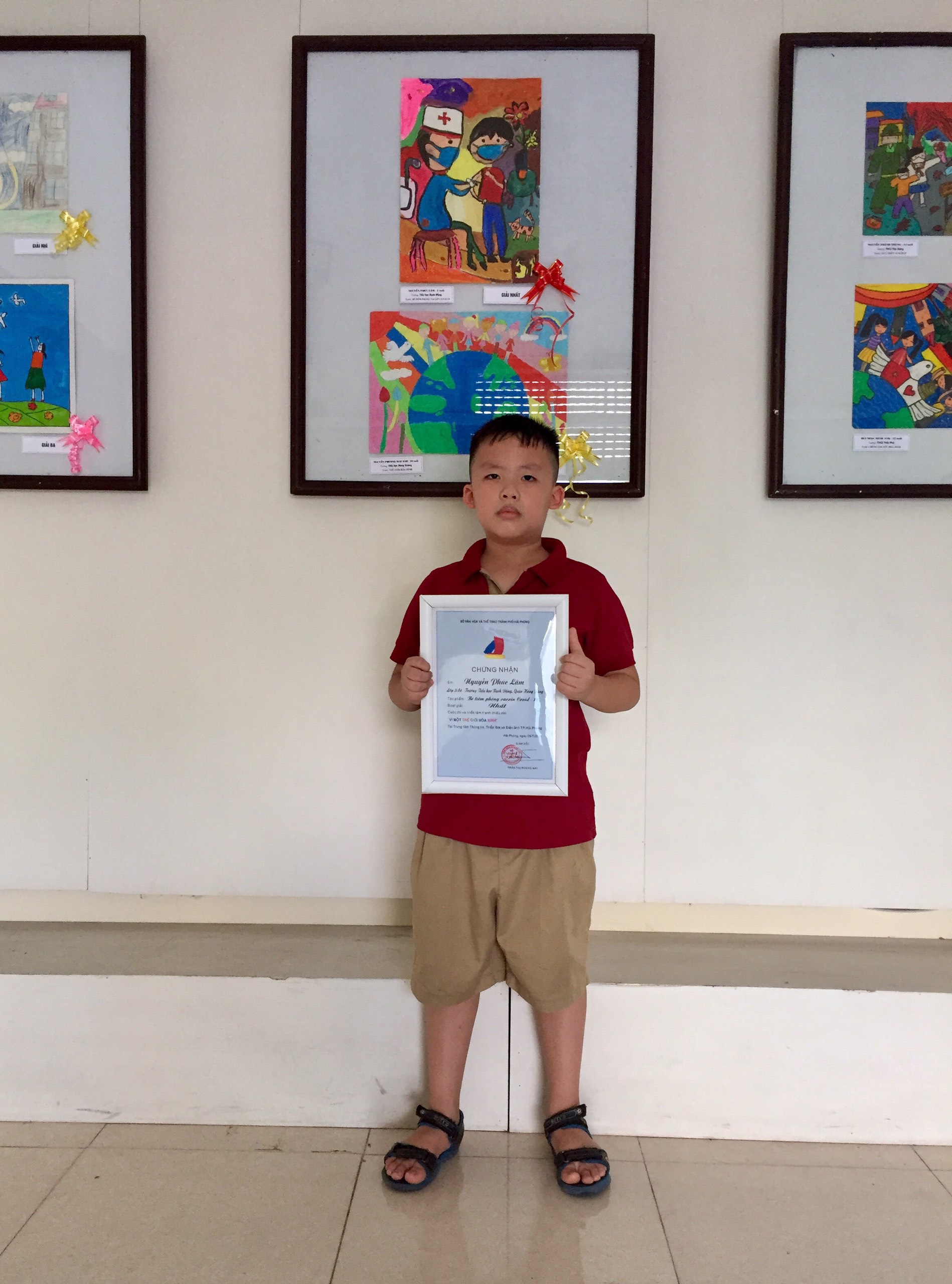 Chúc mừng em Nguyễn Phúc Lâm, học sinh lớp 2A4 với bức tranh "Bé tiêm phòng Vac-xin CoVid-19" đã đạt giải Nhất cuộc thi