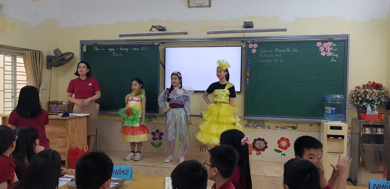 Các em học sinh được chủ động làm việc với tài liệu, xem tiết mục biểu diễn thời trang, chơi trò chơi Đi siêu thị, tự tay làm các thí nghiệm để tìm ra nguồn gốc, tích chất, cách sử dụng, bảo quản chất dẻo. Các em còn được thỏa sức sáng tạo sản phẩm với những rác thải nhựa. Không chỉ biến chúng thành những sản phẩm đẹp, hiệu quả sử dụng cao, mà còn góp phần bảo vệ môi trường làm xanh, sạch, đẹp trường lớp.