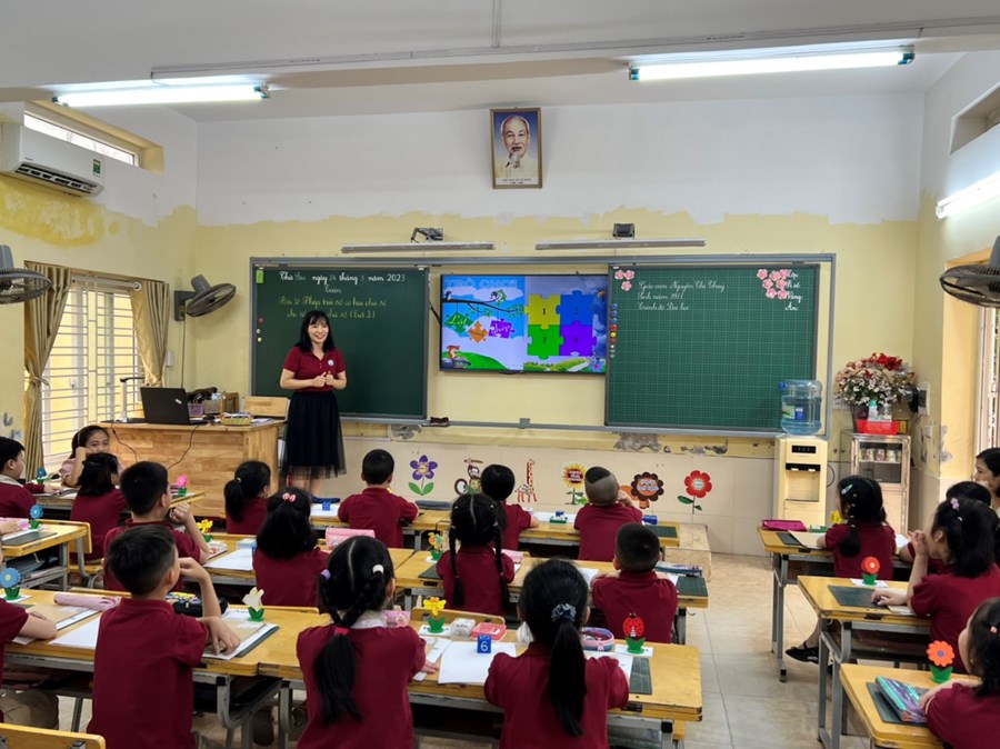 Phần lên lớp minh họa do cô giáo Nguyễn Thị Thủy - giáo viên chủ nhiệm lớp 1A2 thể hiện qua “Bài 32: Phép trừ số có hai chữ số cho số có hai chữ số - Tiết 3”. Trong tiết dạy, giáo viên đã tổ chức các hoạt động giúp học sinh lĩnh hội và luyện tập kiến thức một cách vui nhộn, hiệu quả. Học sinh rất hào hứng, vui vẻ tham gia học tập.
