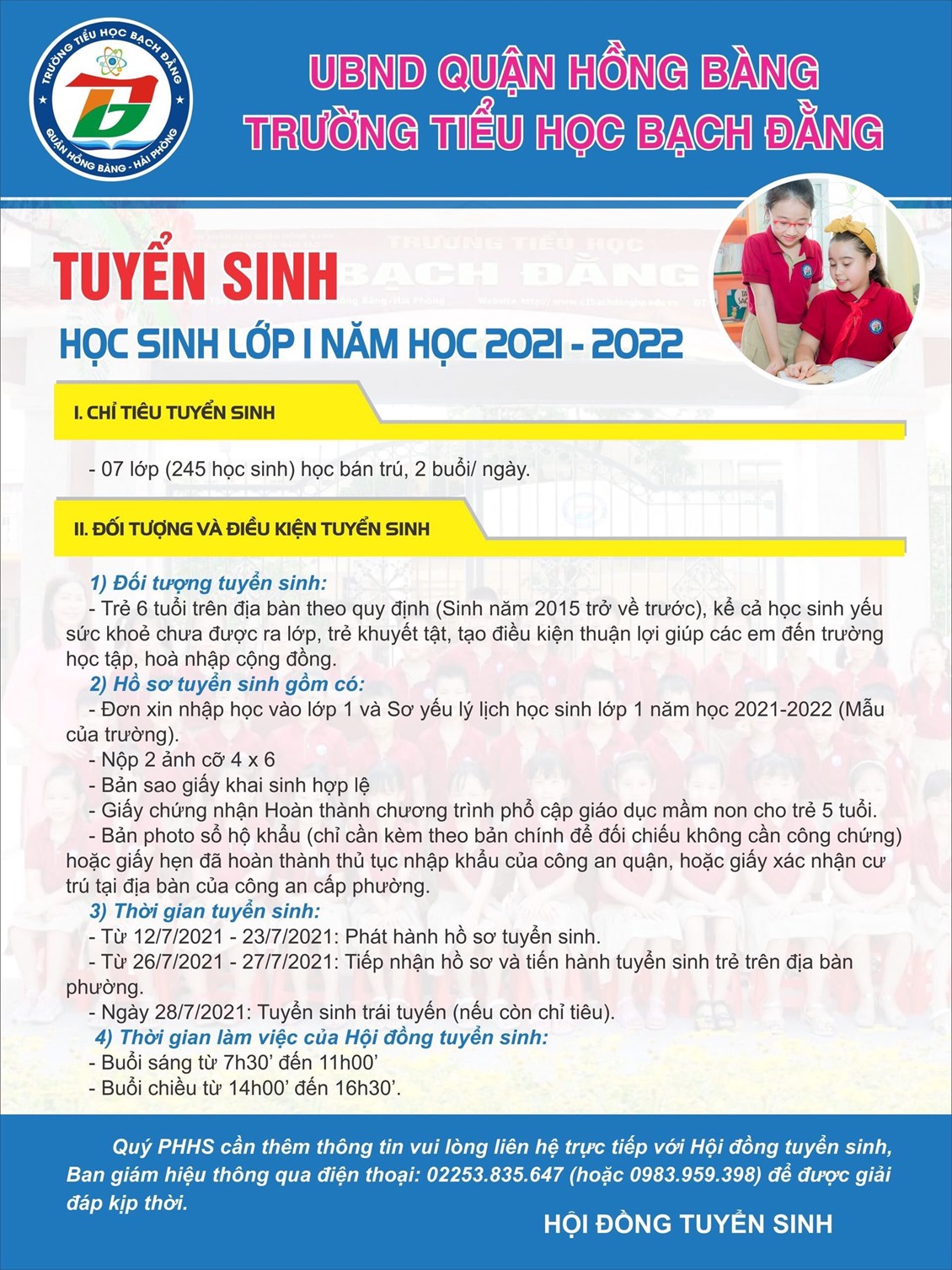 Tuyển sinh học sinh lớp 1 năm học 2021-2022