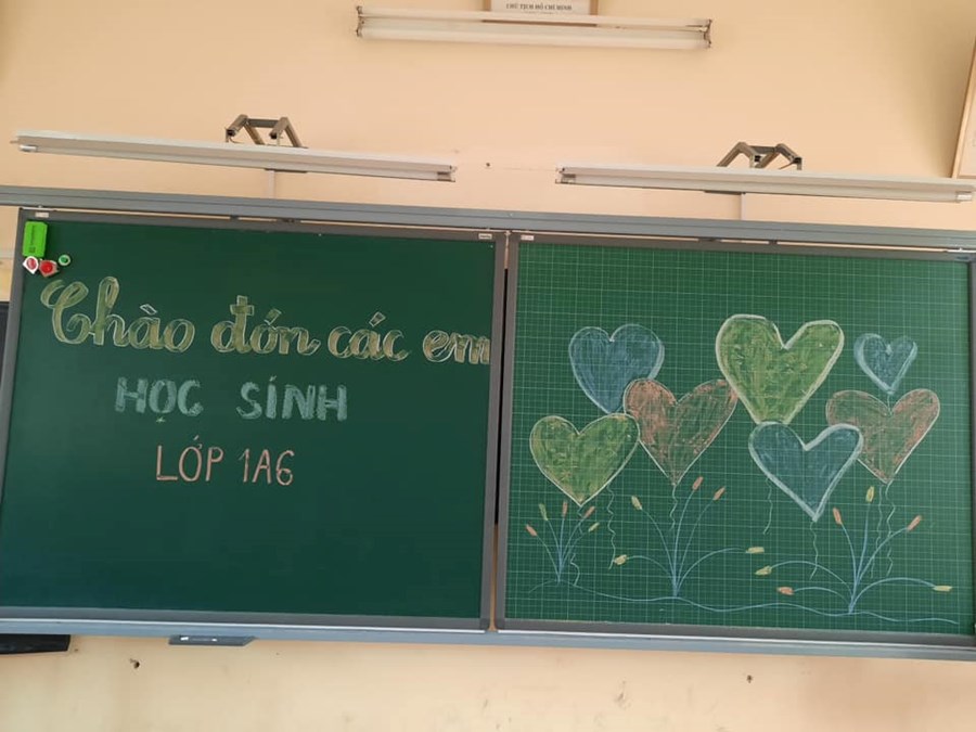 Các khu vực đã được tổng vệ sinh, khử khuẩn. Lớp học được trang trí vui tươi, các bạn bàn ghế cũng được kê gọn đợi được gặp các con.