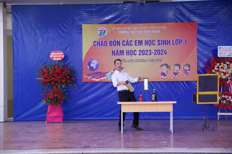 🌺 Mở đầu chương trình các em được thưởng thức các tiết mục văn nghệ vui nhộn, những màn ảo thuật đặc sắc của các anh chị lớp trên, các thầy cô giáo nhà trường. Các em được nghe giới thiệu về ngôi trường Tiểu học Bạch Đằng, nơi các em sẽ gắn bó suốt 5 năm bậc Tiểu học.