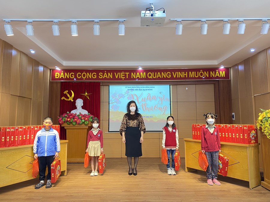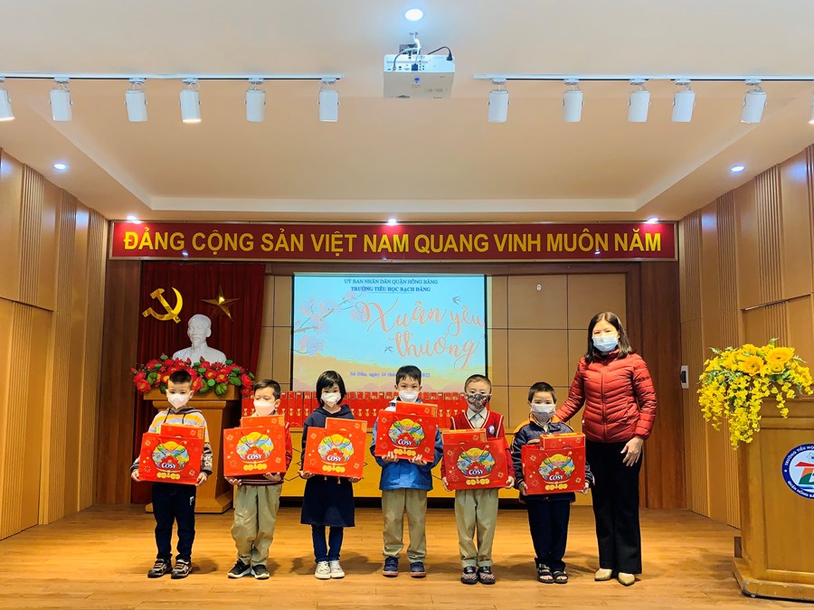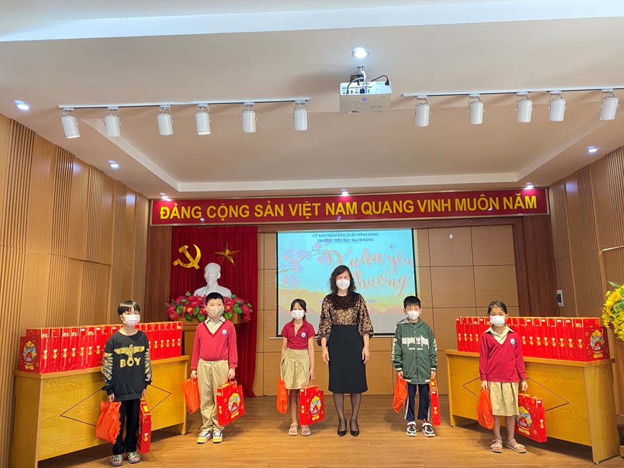 Ngày 24/1/2022, tại Hội trường Trường Tiểu học Bạch Đằng, nhà trường đã tổ chức chương trình "Xuân Yêu thương 2022" - trao tặng 74 suất quà Tết cho học sinh.