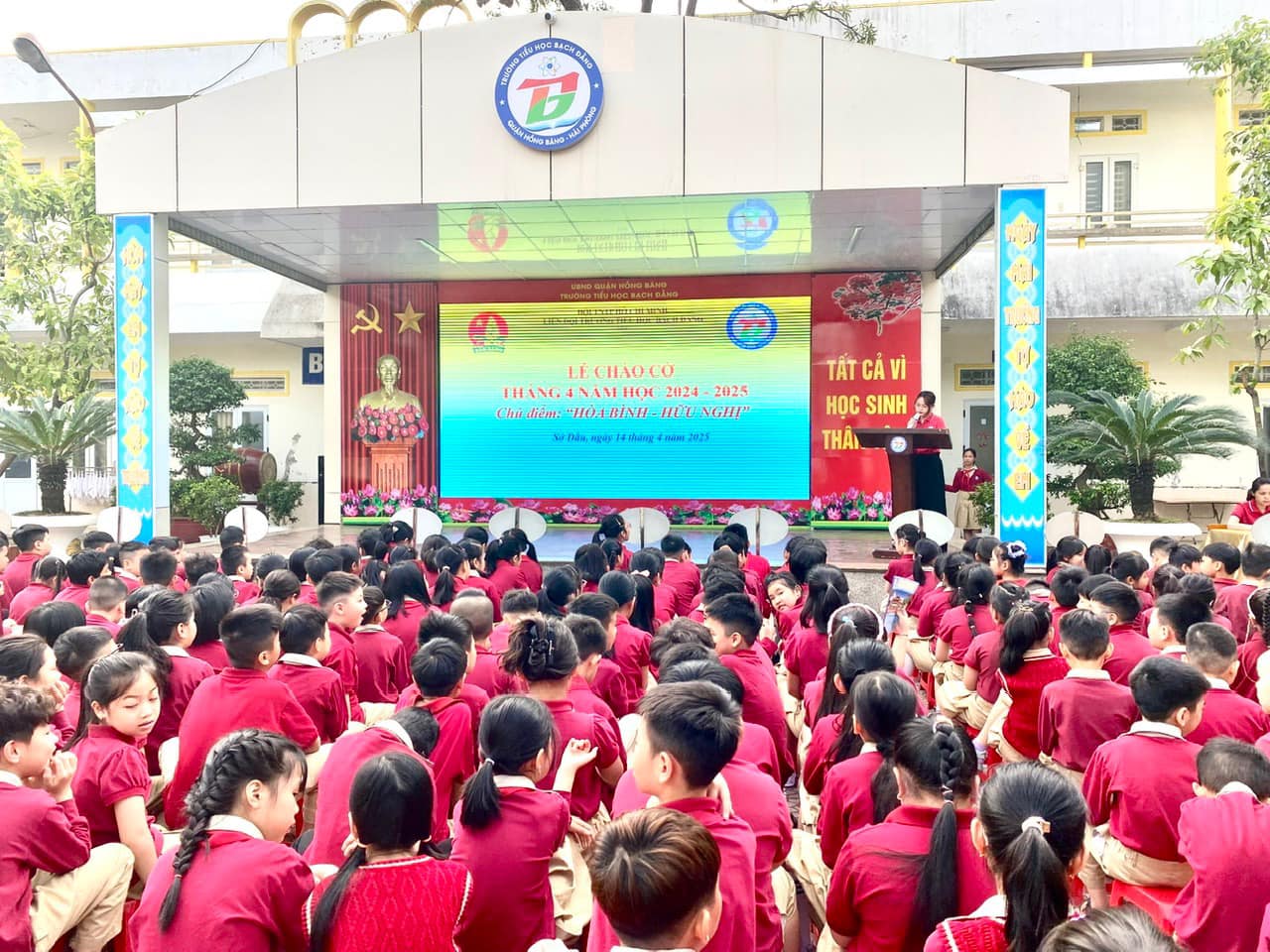 Sáng thứ Hai, ngày 14/04/2025, Liên đội trường Tiểu học Bạch Đằng tổ chức SINH HOẠT DƯỚI CỜ tháng 04/2025 với chủ đề: "Hoà bình - Hữu nghị"; Chuyên mục “Mỗi tuần một cuốn sách hay, một tấm gương sáng, một tình bạn đẹp"