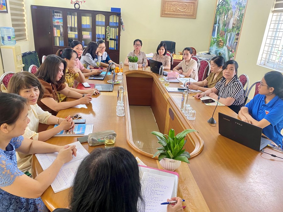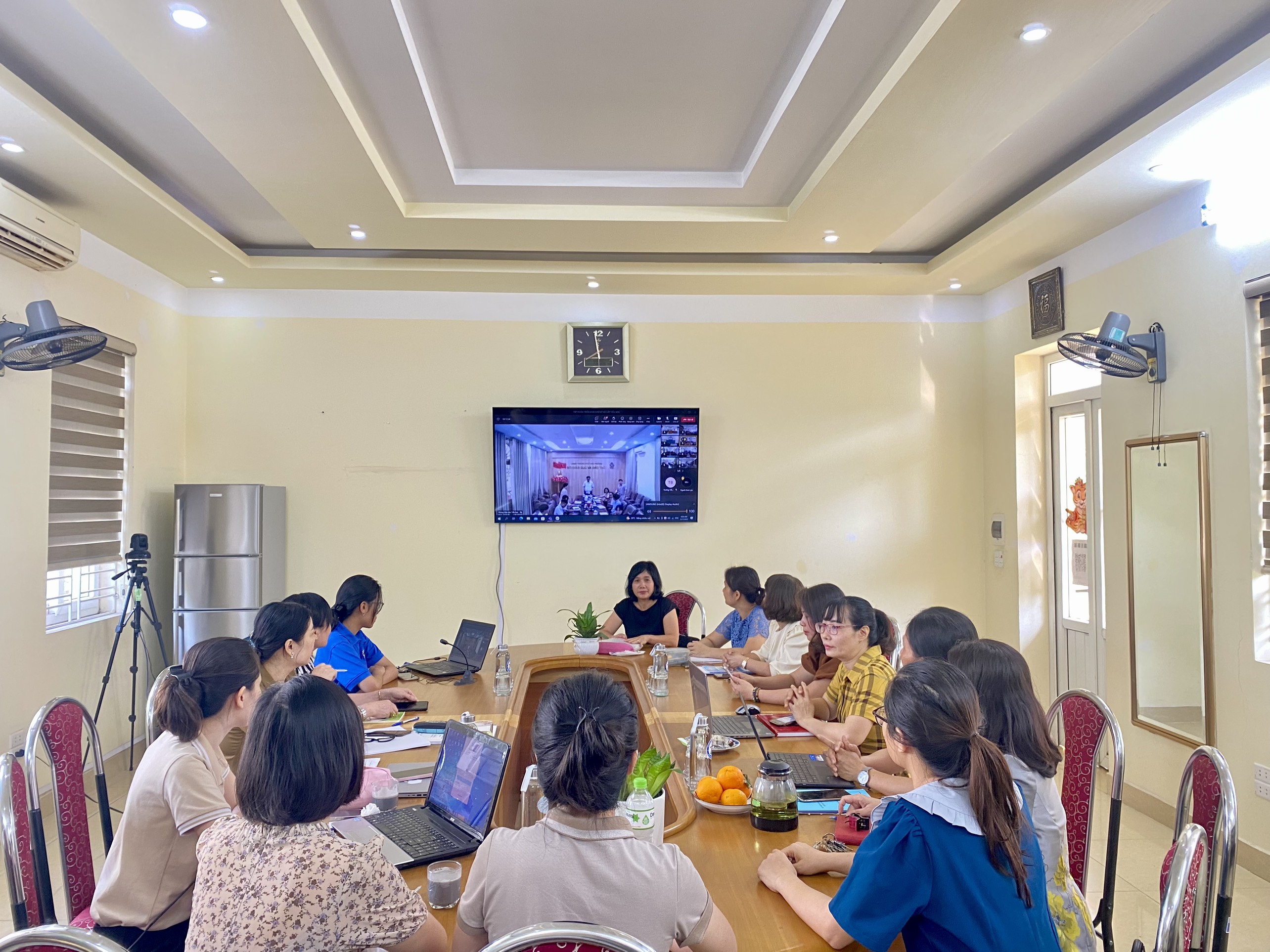 Tại điểm cầu trường Tiểu học Bạch Đằng, thành phần tham dự có Ban giám hiệu, tổ trưởng chuyên môn, đại diện GV các tổ và nhân viên của nhà trường.