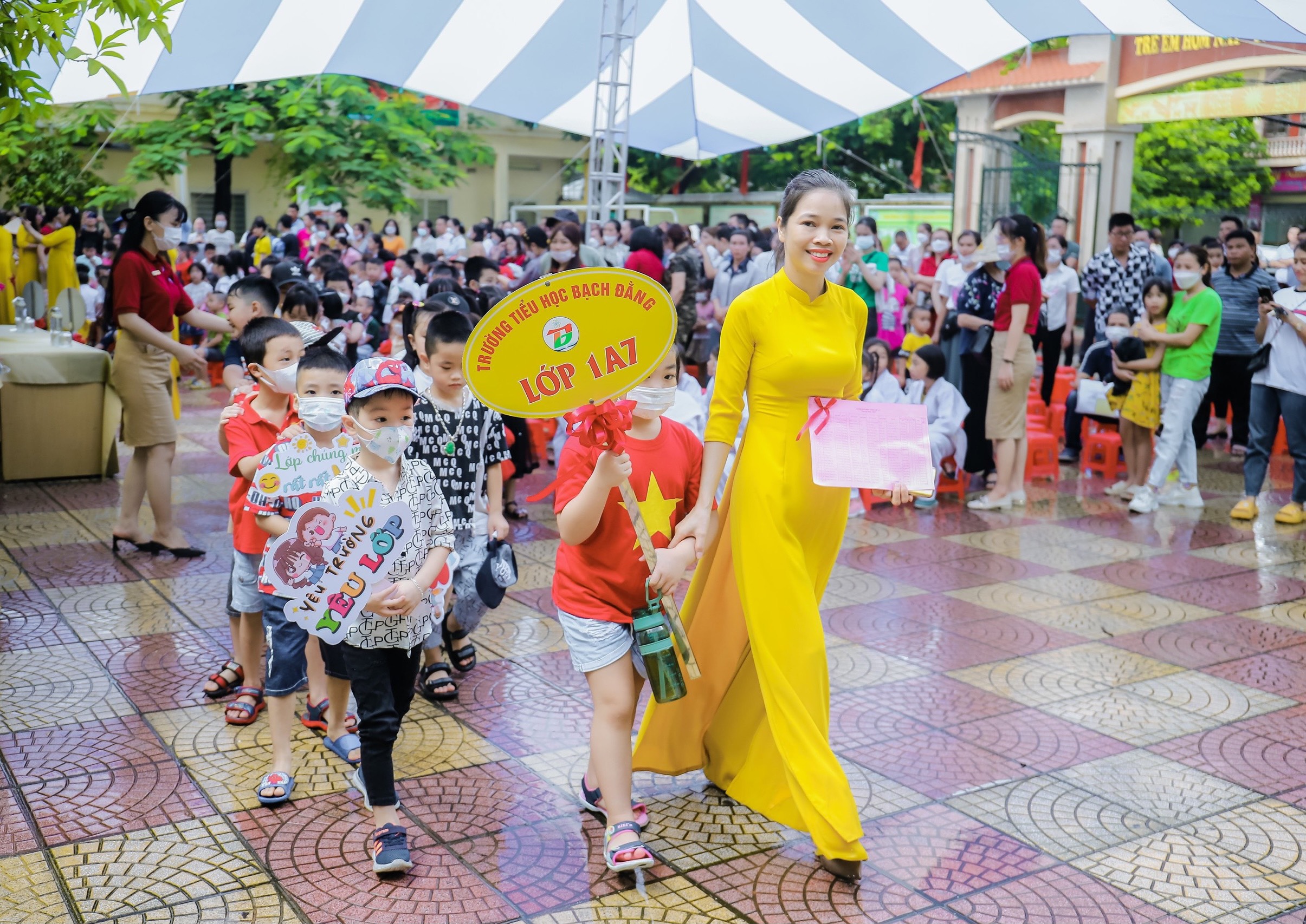 Mặc dù thời tiết có mưa nhưng ngày tựu trường của các em học sinh lớp 1 vẫn diễn ra trong không khí đầm ấm, vui tươi, phấn khởi,... Các tiết mục văn nghệ đặc sắc do các anh chị học sinh từ các CLB của nhà trường thể hiện để chào đón các em học sinh lớp 1.