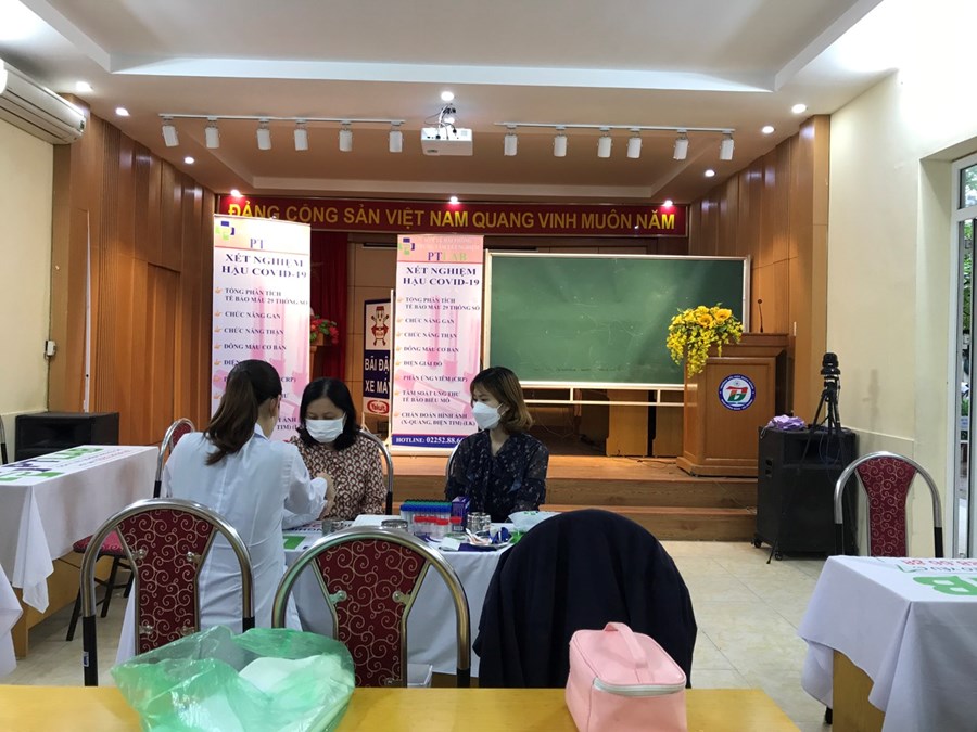 Nhằm giúp cho CB,GV,NV nhà trường kiểm tra sức khỏe, loại trừ các di chứng hậu COVID -19 cũng như chăm sóc và điều trị sớm các di chứng hậu COVID -19, Công đoàn Trường Tiểu học Bạch Đằng đã phối hợp với Trung tâm xét nghiệm PTAB tổ chức khám hậu Covid-19 cho trên 50 cán bộ, giáo viên, nhân viên (CB,GV,NV) ngay tại trường với gói xét nghiệm cơ bản hậu Covid-19 bao gồm: