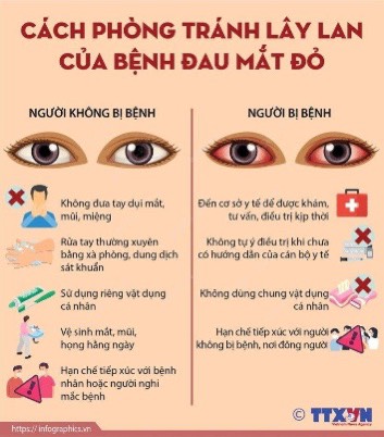 6. Người bệnh hoặc người nghi bị đau mắt đỏ cần hạn chế tiếp xúc với người khác và đến cơ sở y tế để được khám, tư vấn, điều trị kịp thời. Không tự ý điều trị khi chưa có hướng dẫn của cán bộ y tế.
